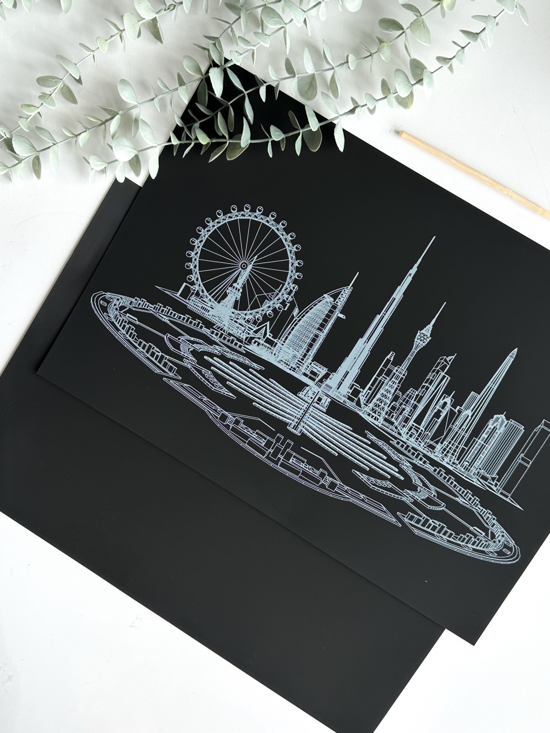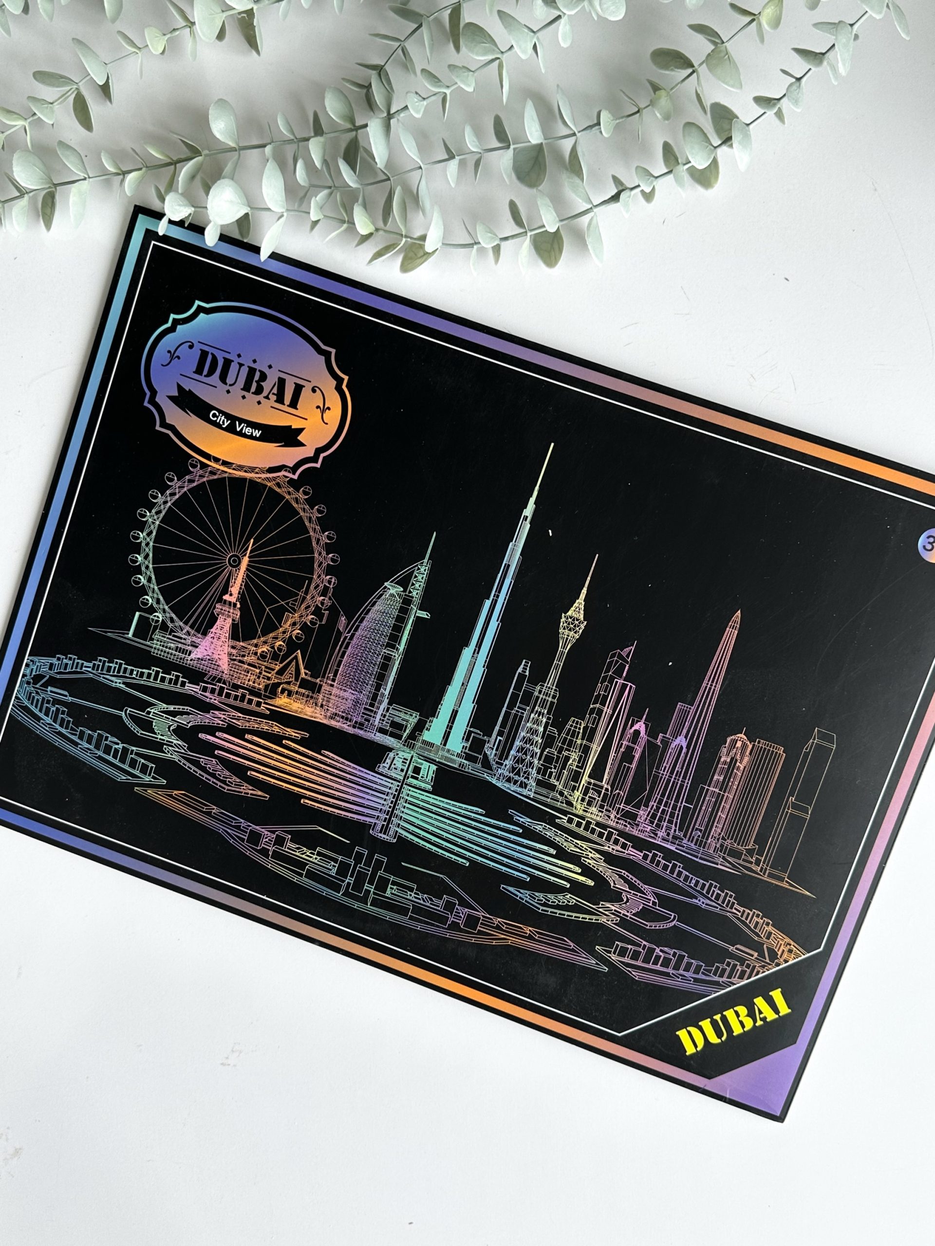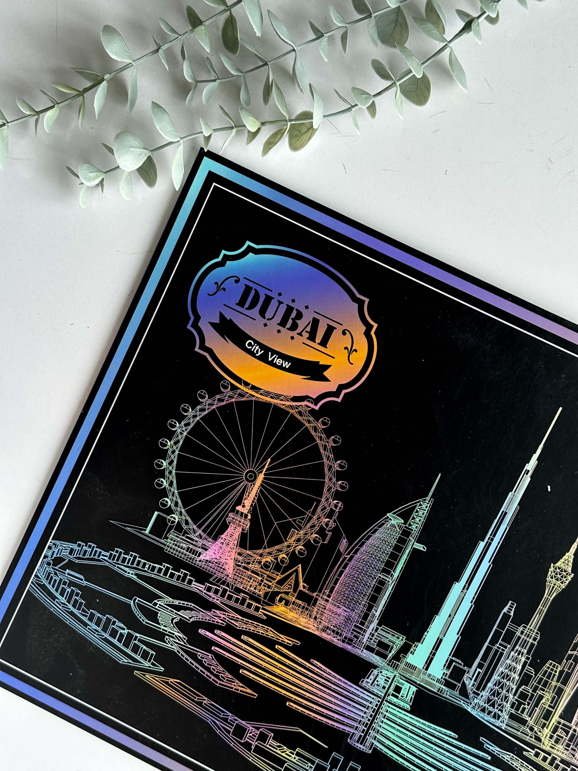هر پک دو برگ نقاشی اسکرچی (طرح دبی+صفحه خالی) داره
