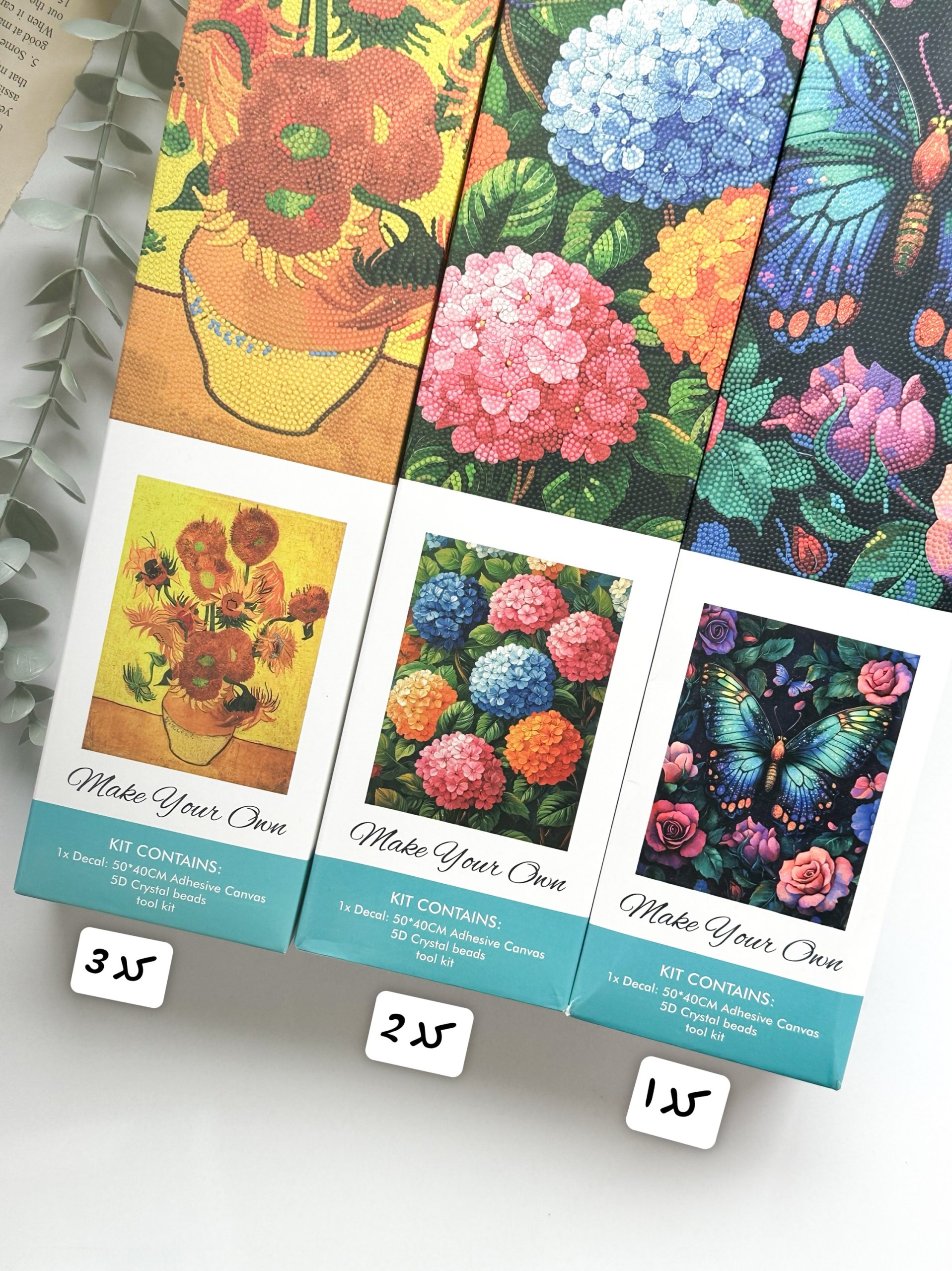هر پک شامل صفحه کد گذاری شده،الماس،ظرف و قلم مخصوص و وکس میباشد